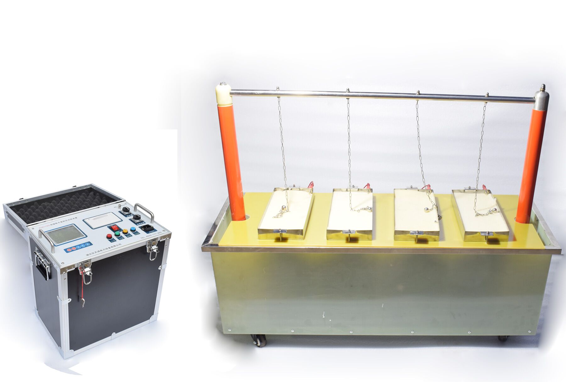1. 絕緣靴(手套)試驗(yàn)車,試驗(yàn)車由:移動(dòng)托架;盛水水槽;電極桿支撐等組成;