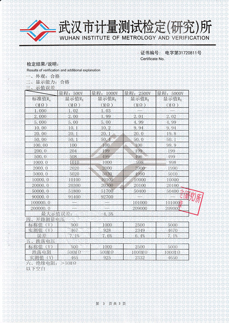 | 吸收比,極化指數(shù) | 范圍:1~19.99 誤差:±(5%RDG+1d) (R>2MΩ) |