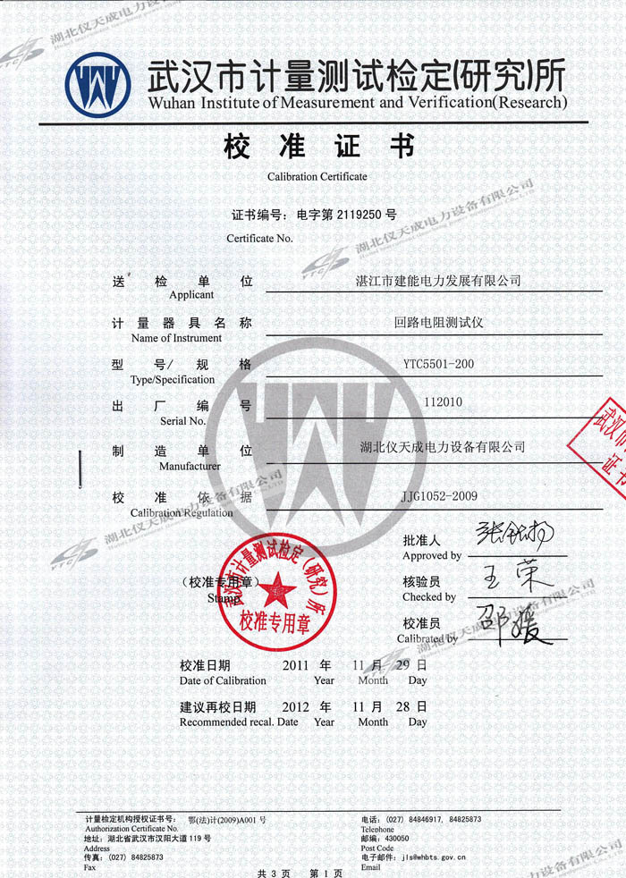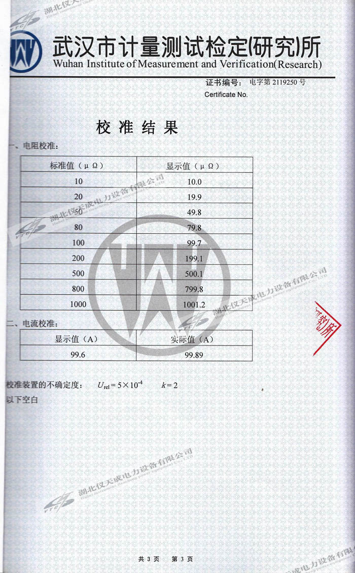 YTC5501-200A回路電阻測(cè)試儀的資質(zhì)證書