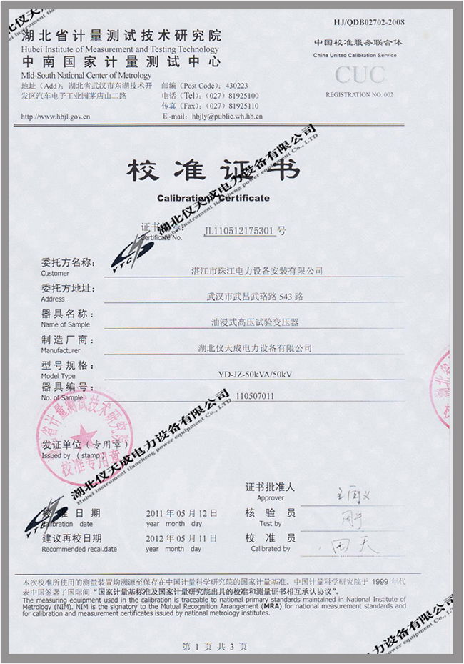 證書編號:JL110512175301